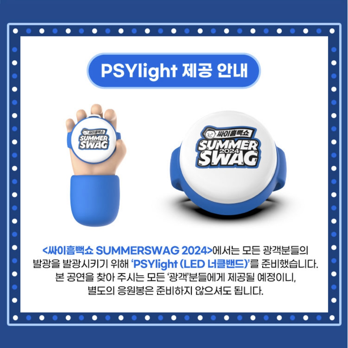 모든 관객분들에게 발광 너클밴드를 제공될 예정이니